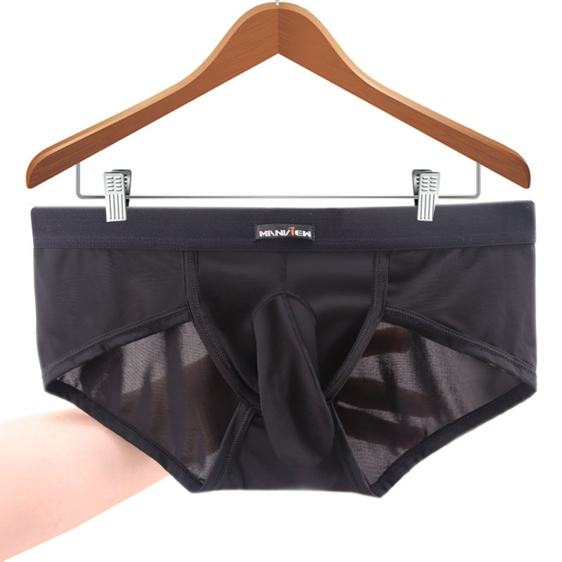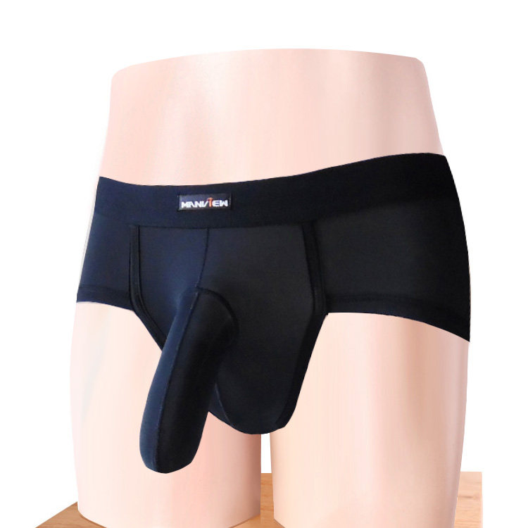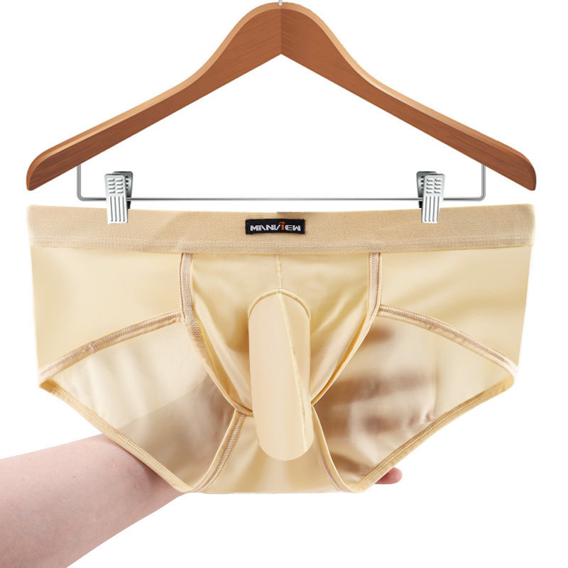 Men's Ice Silk Elephant Underwear Man Triangle Pants Gun Egg Separation JJ Set Sexy Low Waist Super Slim Anti Damp Shorts