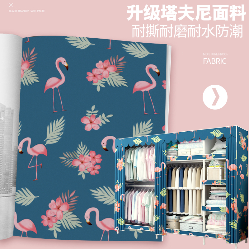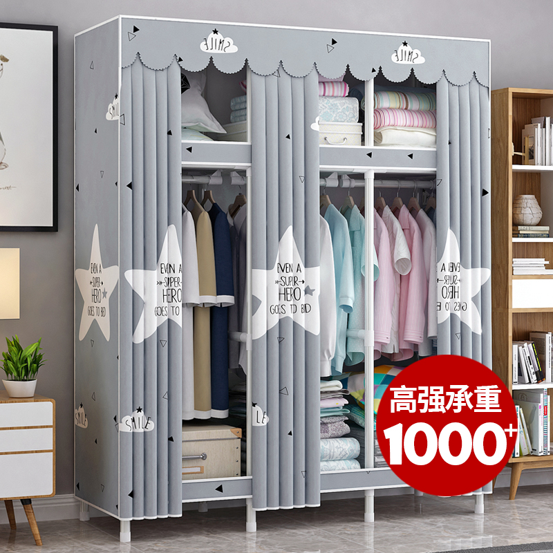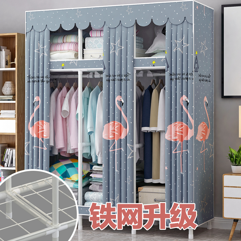 Cloth wardrobe steel pipe thickened reinforcement single assembly simple dormitory fabric storage wardrobe sub-economy small wardrobe
