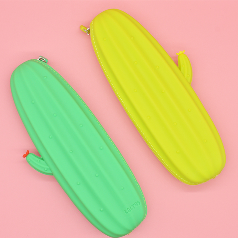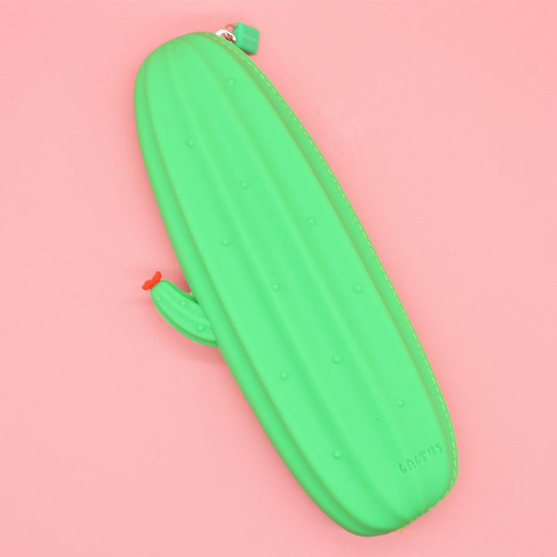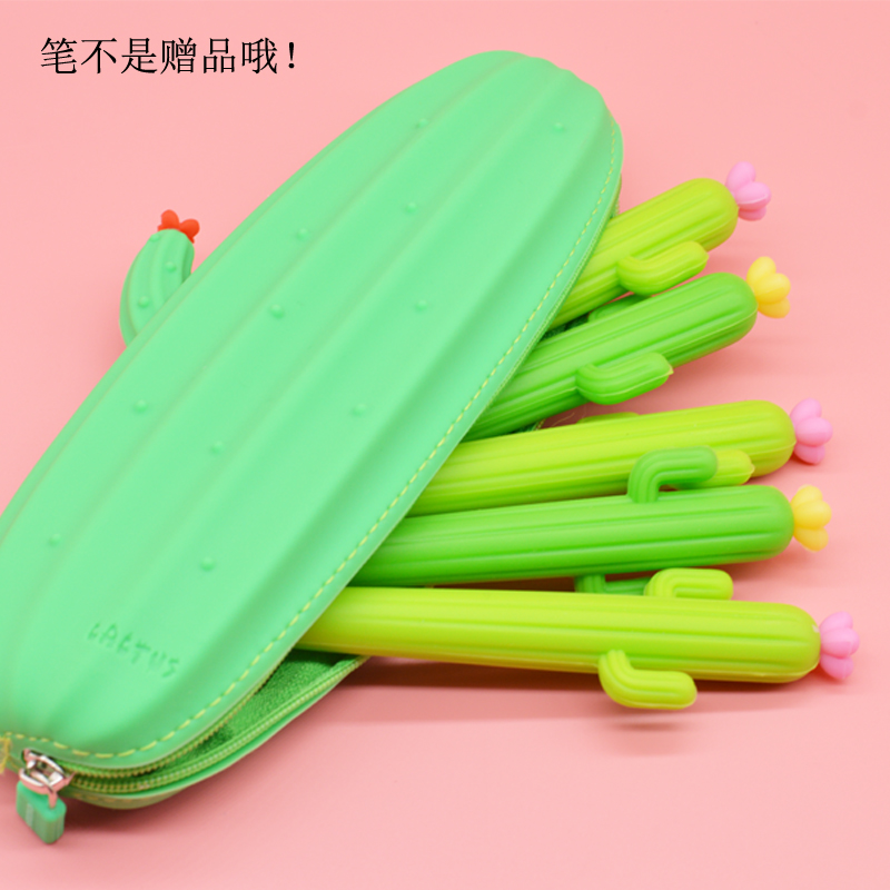 Creativity Cute Soft Silicone Gel Cactus Pen Bag Cartoon Primary School Student Silicone Pencil Bag Washable Stationery Bag