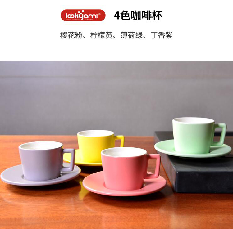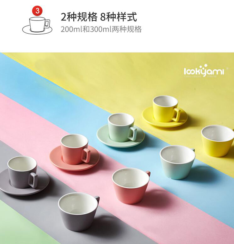 Lilac Purple 200ml with saucer Mint green 200ml with saucer Lemon yellow 200ml with saucer Cherry blossom powder 200ml with saucer Mint green 300ml without saucer Lilac Purple 3