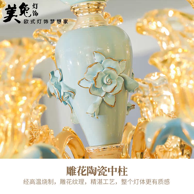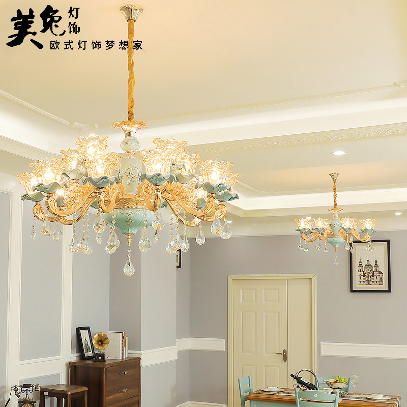 New European-style ceramic chandelights Atmospheric Luxurious Living Room Water Crystal Light Romantic Cozy Bedroom Dining Room Light Low Floor Home