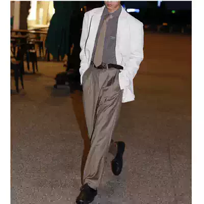 He Jianghai The same original retro Hong Kong style 80 high waist loose plaid straight tube foot mouth gentleman tooling casual pants men