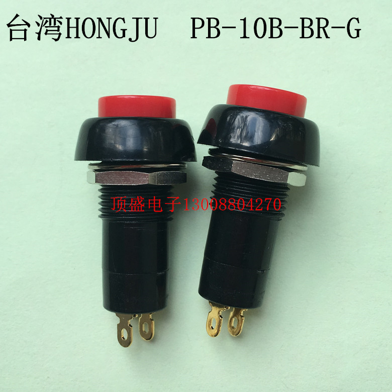Taiwan HONGJU push button switch PB-10B-BR-G red round two-legged push button switch