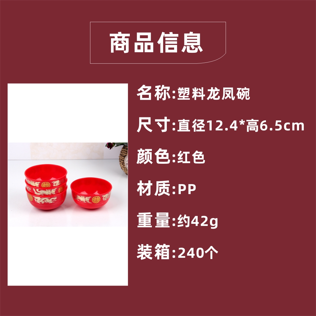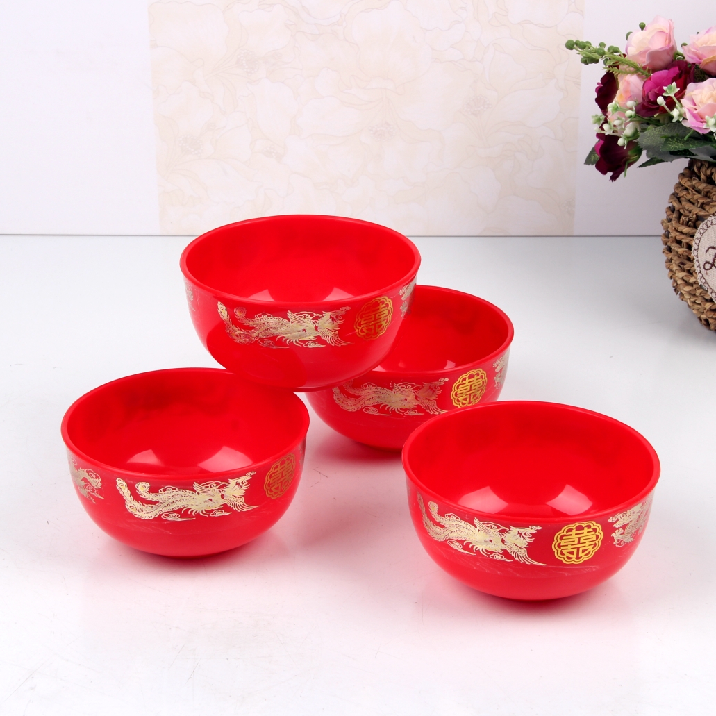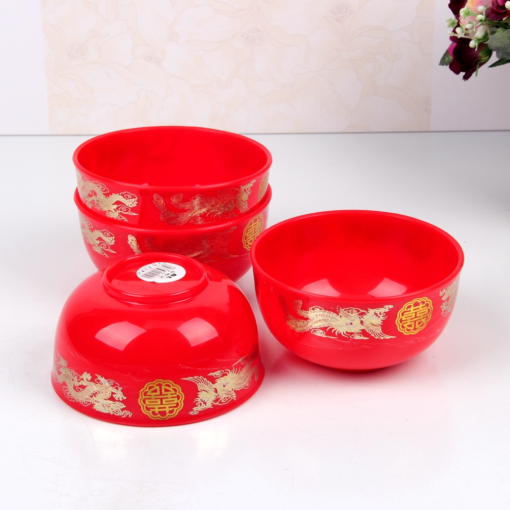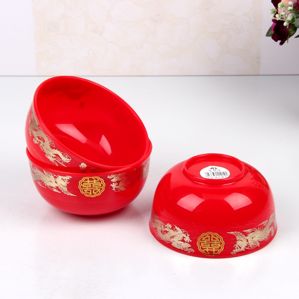 Weizhen Department Store hi bowl wedding pair bowl wedding dowry wedding supplies red plastic bowl dragon and phoenix hi bowl