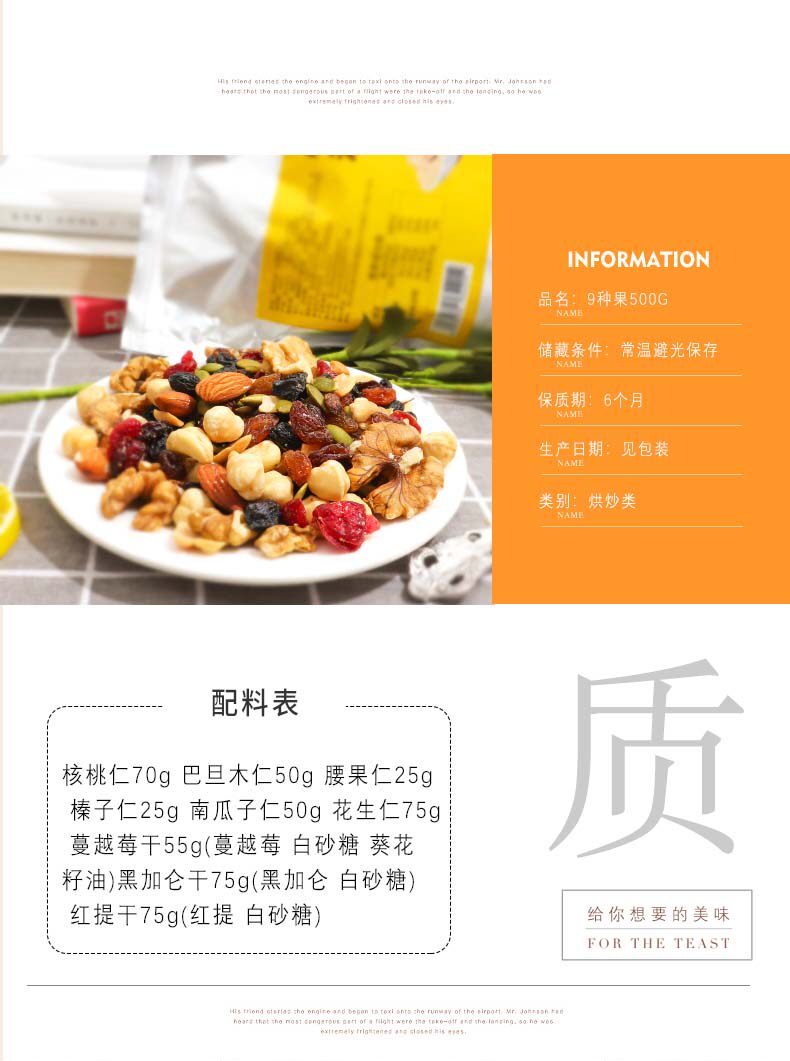 Daily nut assorted bulk nuts 9 kinds of dried fruit mixed dried fruit 500g snowflake crisp nougat raw material
