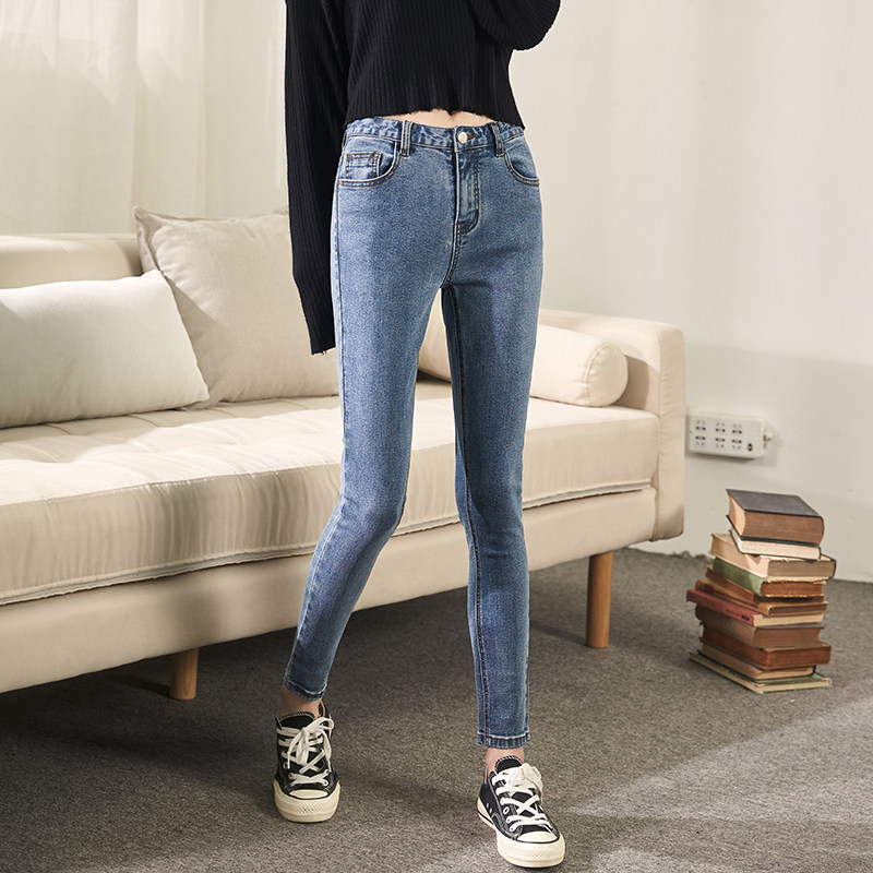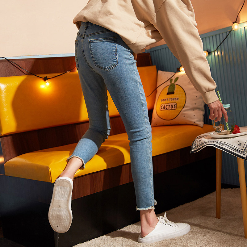 Tang lion 2021 spring and autumn new jeans for women thin nine-point pants tight high waist slim trousers ripped pants for women