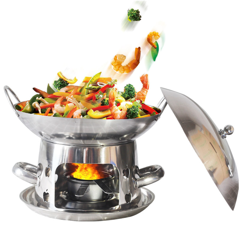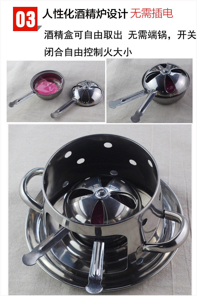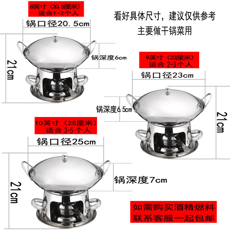 Stainless steel dry pot thickened household commercial set solid liquid alcohol stove small hot pot adjustable fire hotel dry pot