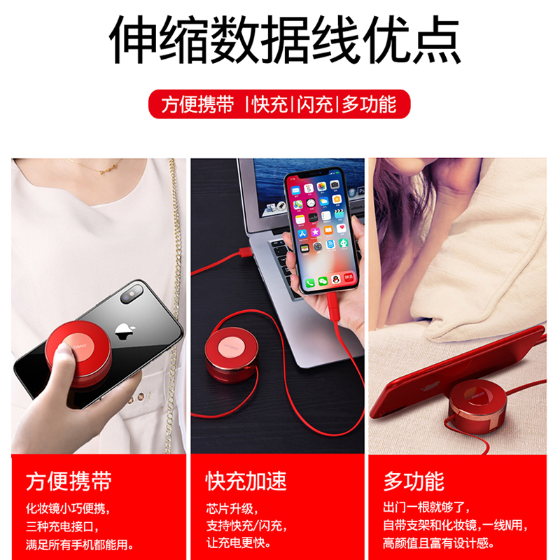 Data line three-in-one applies Apple iPhones XR Xiaomi Huawei typec Android mobile phone charging wire instrumental two-in-one three-wire telescopic multi-head function fast charging and accommodating punching electric bike load lengthening