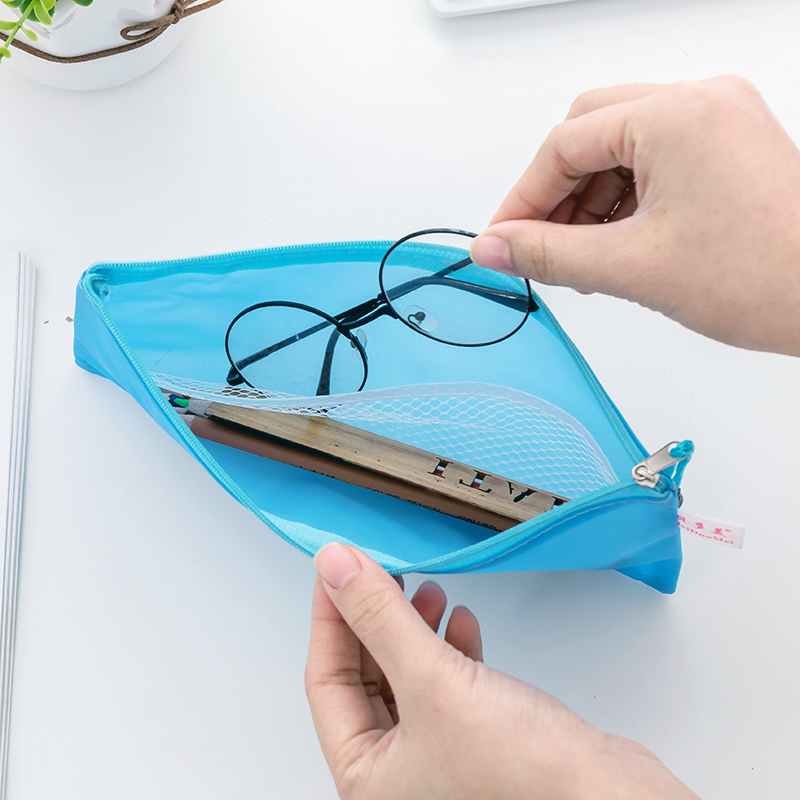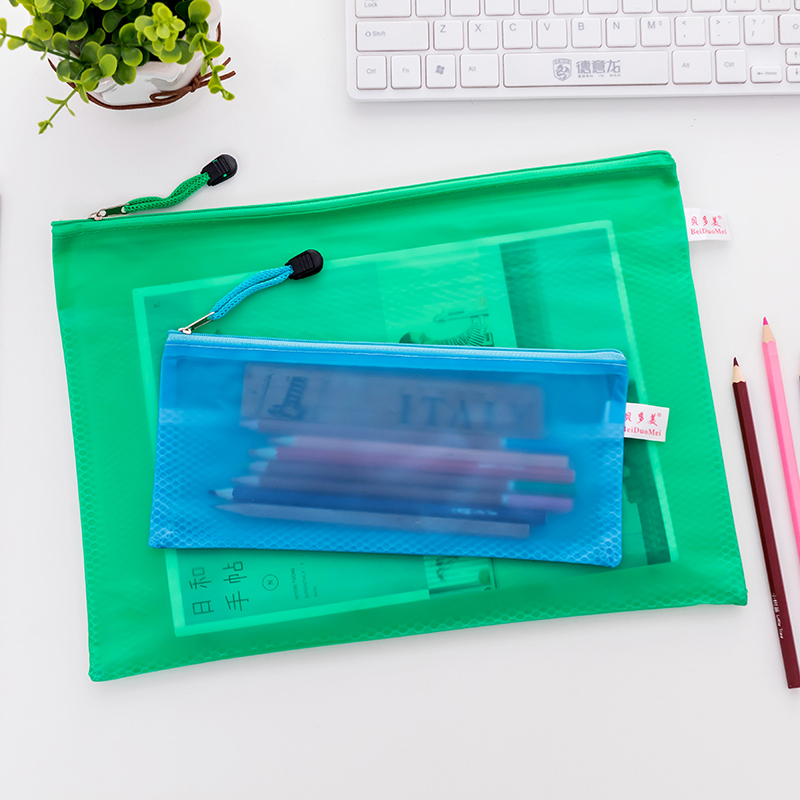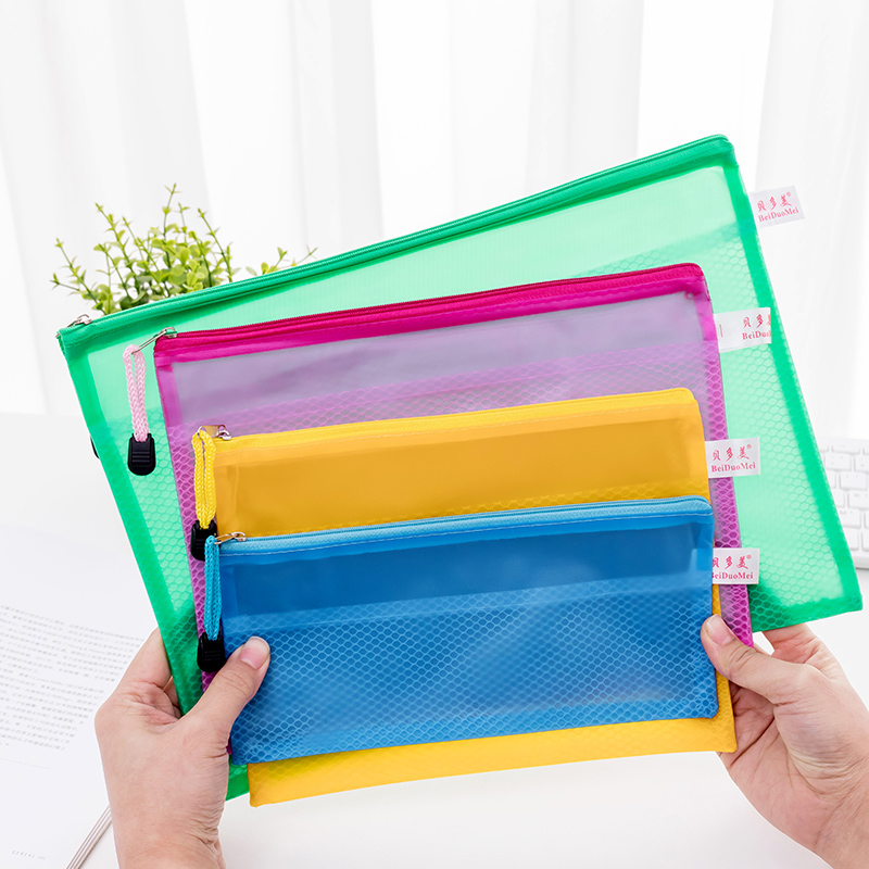 Customize A4 A5 double layer of file bag Laced Bag Frosted Translucent Pull Side Bag kit Clip Mesh Big Bag
