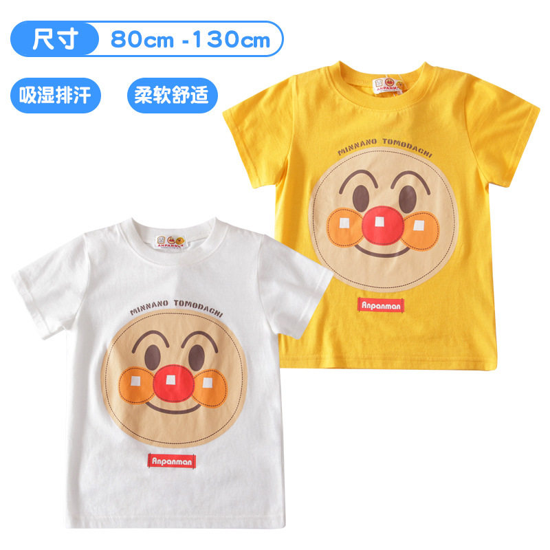 New yellow big face T-shirt yellow big face T-shirt new white big face T-shirt white big face T-shirt white Anpanman yellow Anpanman gray bacteria boy blue bacteria boy pink bacteria sister red stripe