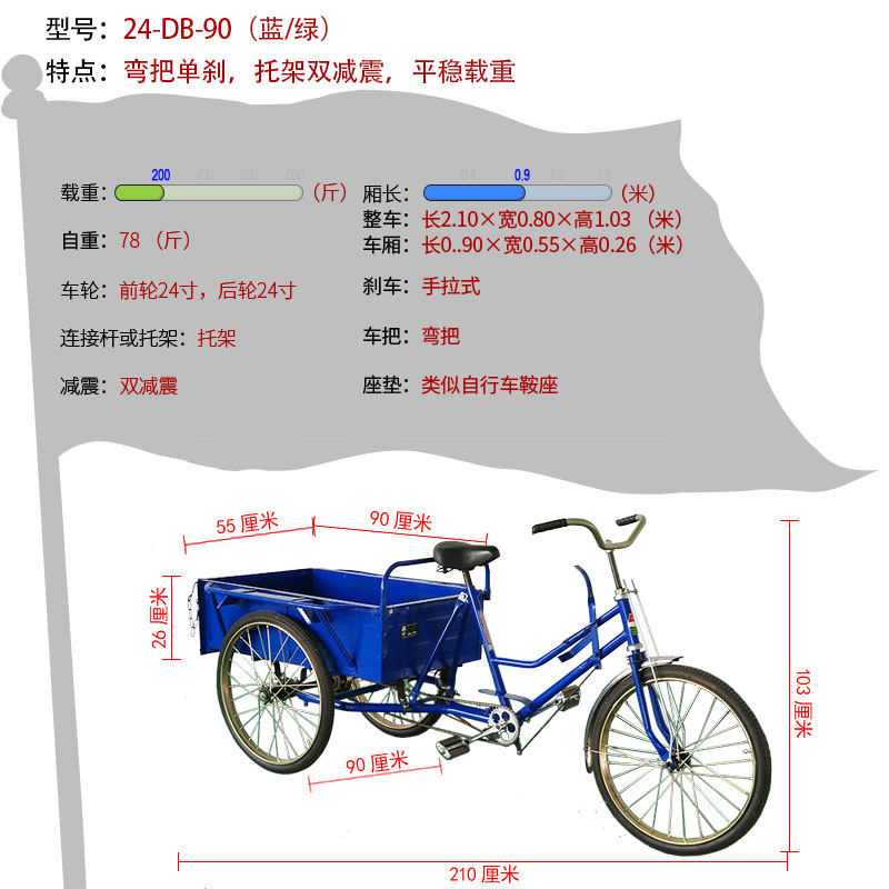 5-Star 90 cm Long rickshaw Three-wheeler Seniors Scooter single-brake pull-in-truck Labor-saving Bike depository