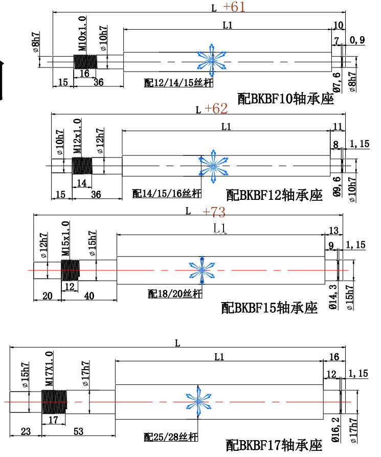 Bearing support seat EKEF FKFF BKBF10 12 15 17 20 25 30 35 40 end machining drawing