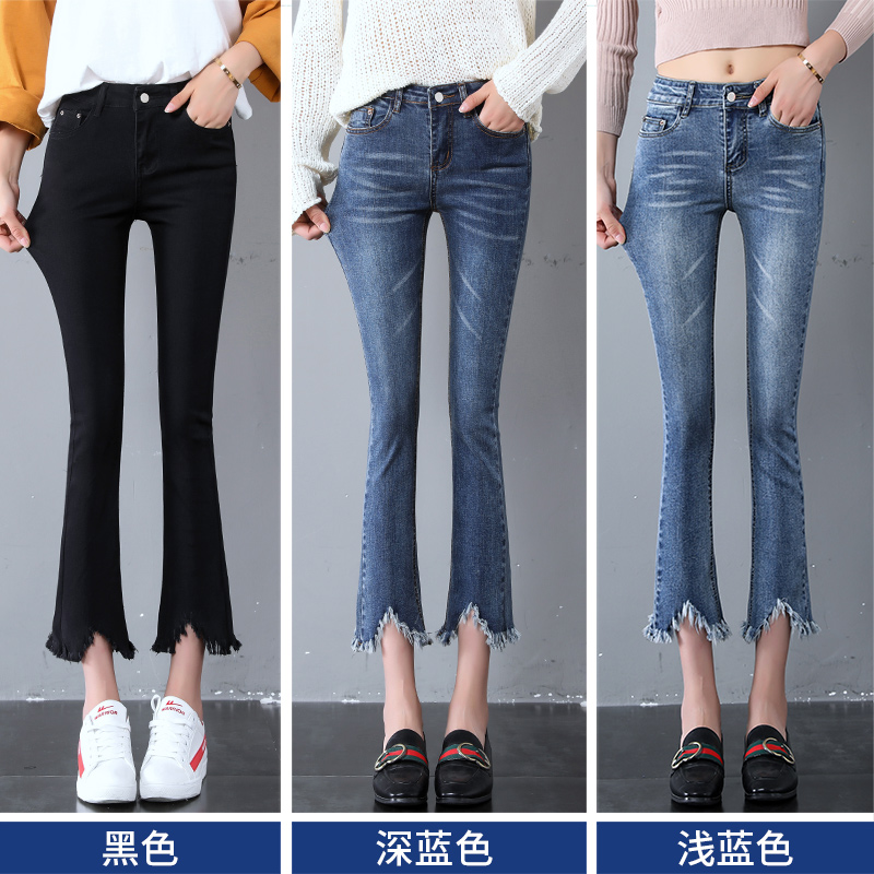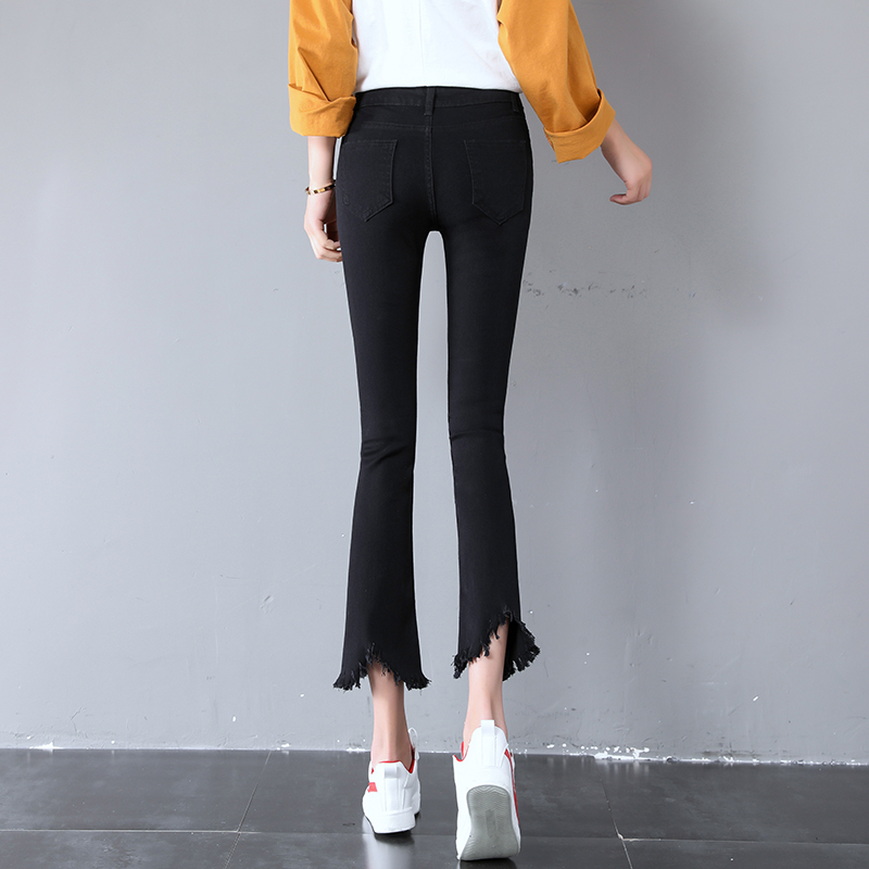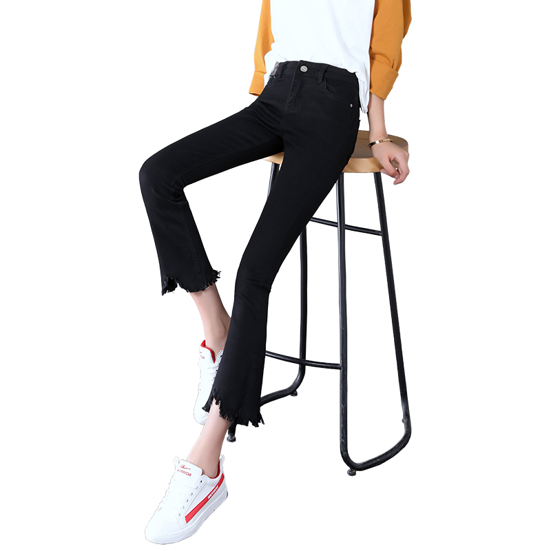 Black straight jeans women's summer 2021 new Korean edition stretch nine-point burred student micro flared pants
