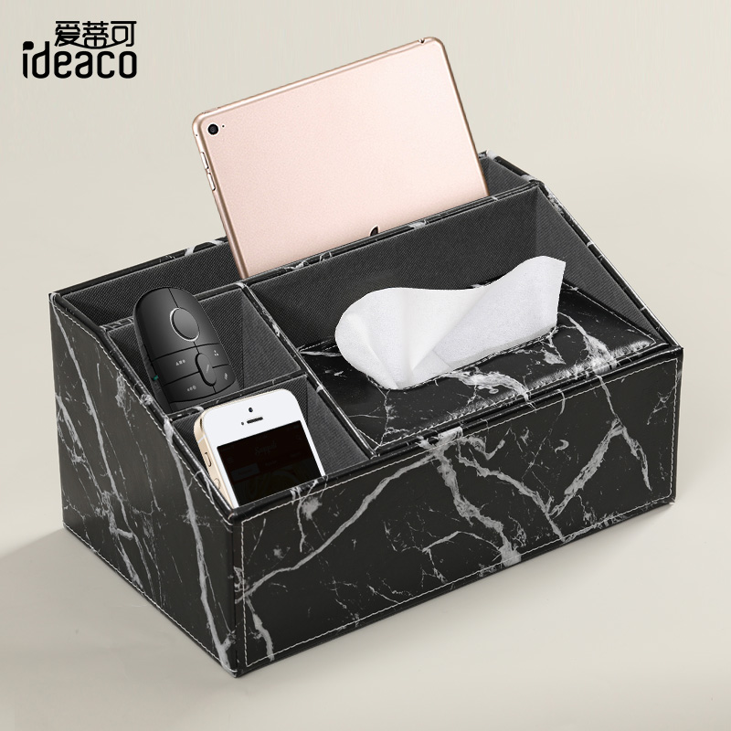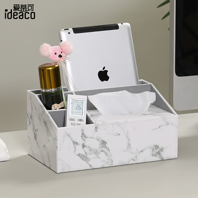 Nordic marble leather multi-function tissue box Household creative living room coffee table remote control storage box Toilet paper box