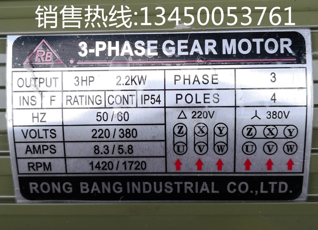 Rongbang gear reducer motor 1 5KW 2 2KW 3 7KW three-phase 380V horizontal vertical reducer motor