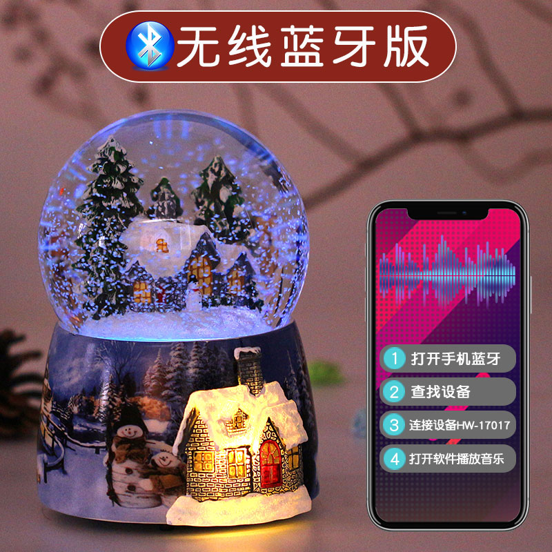 Christmas gift crystal ball music box snowflake snow scene music box birthday rotatable dream girl girl girl