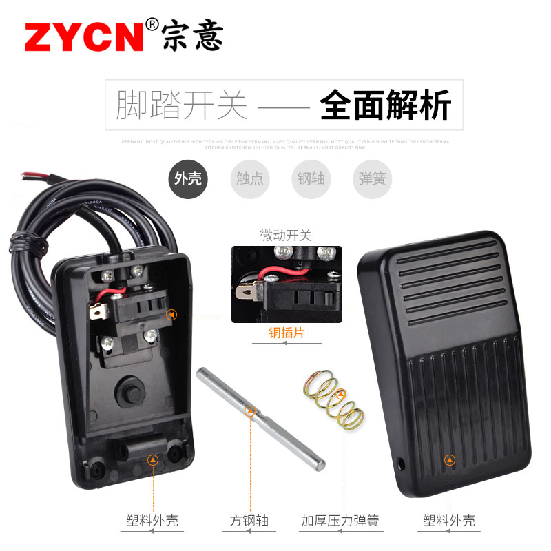 TFS-1 pedal switch foot tread band line 20CM 10A point move plastic shell self-reset controller pedal 220v
