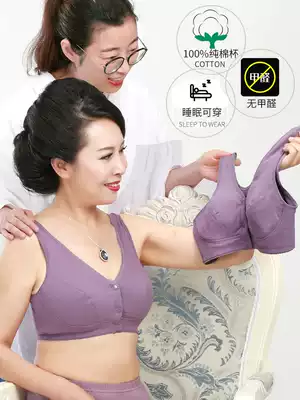Mom underwear bra middle-aged and elderly cotton bra 50-year-old vest style without steel ring large size front buckle summer thin women