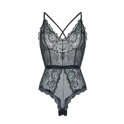 French sexy lace perspective sling sling pajamas deep V seduction backless cross beauty jumpsuit