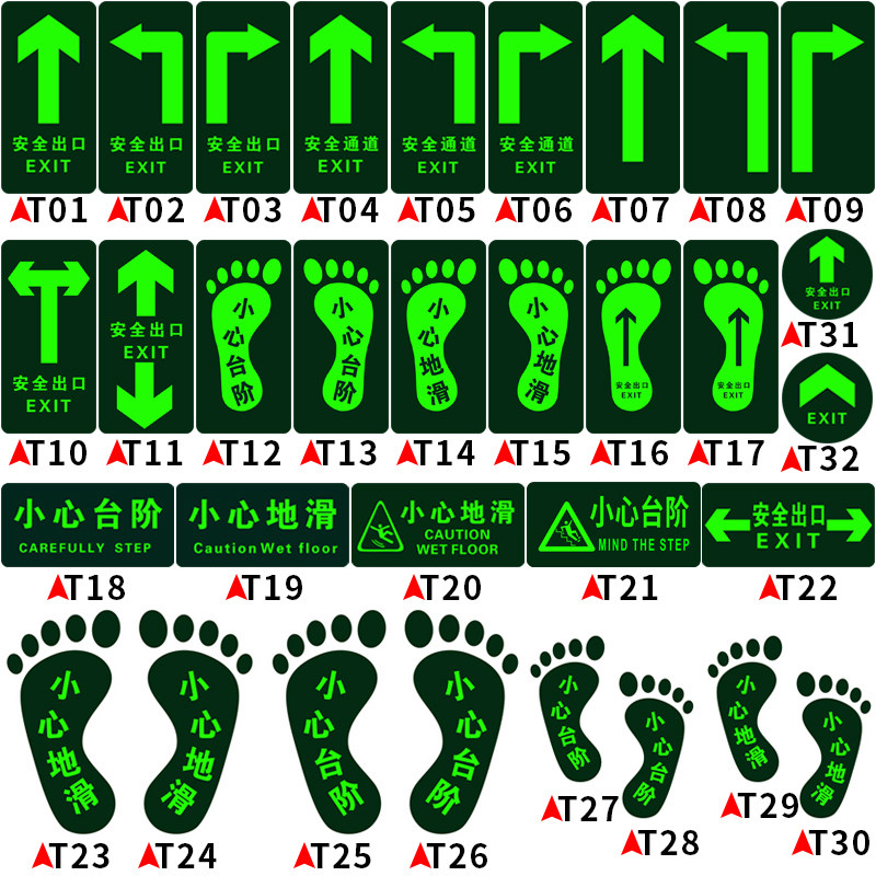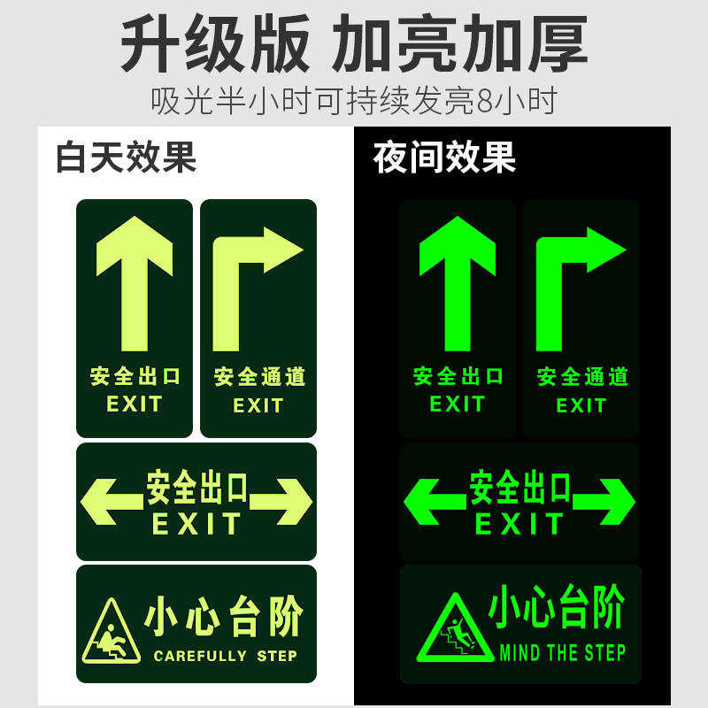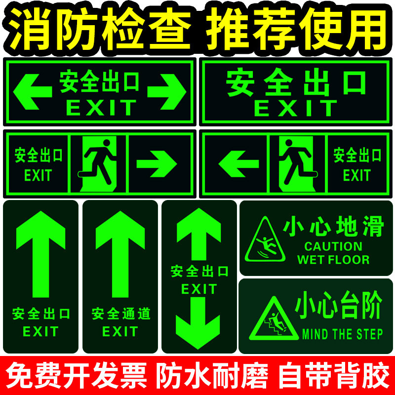 Safety exit signs Floor stickers Luminous wall stickers Passage stickers Careful steps sliding warning signs Emergency exit prompt signs Fluorescent self-luminous evacuation arrow Fire emergency signs