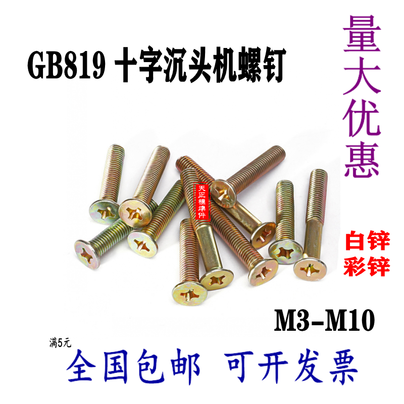GB819 cross sink head screws cross flat head screws machine nail M3M4M5M6M8M10 color zinc white zinc