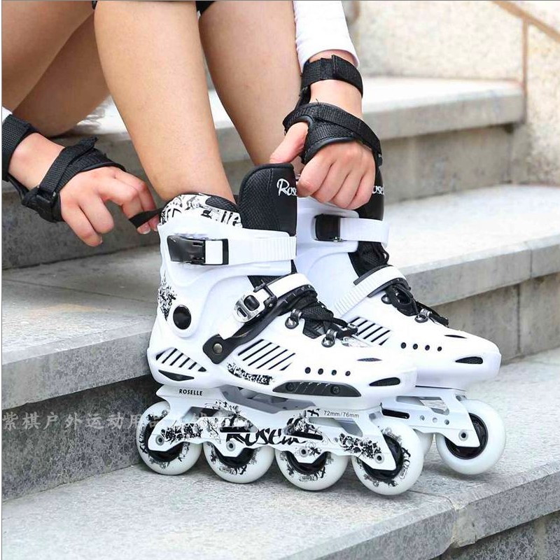 Adult Wheels Skating Shoes Skate Inline Skate Straight Wheel Men And Women Adult Dry Skates Professional College Students Flat Flower Shoes Luminous Flash