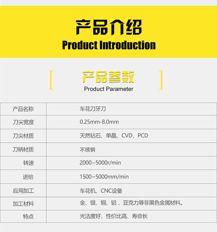 Yuhe MCD single crystal diamond tooth knife jewelry processing tooth knife diamond tool jewelry gold turning knife CVD