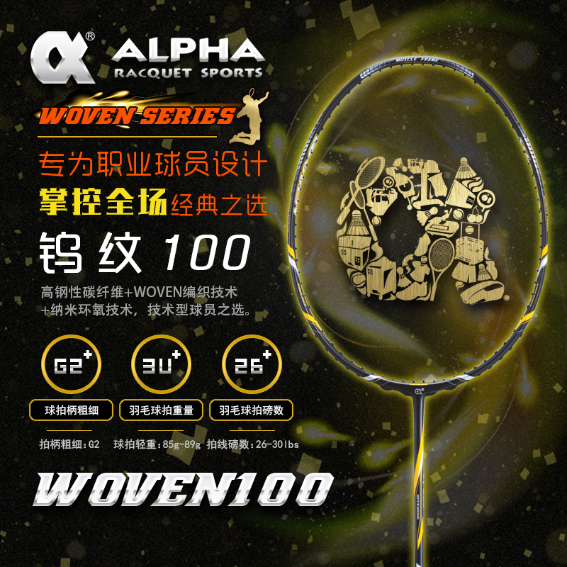 Alpha Nanoepoxy Technology Feather Racket WOVEN Braided Tungsten 100