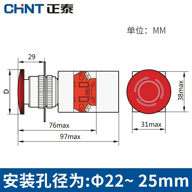 The Chongtai button emergency stop switch NP4 - 11ZS emergency stop lock control button opens the mushroom head lock protection