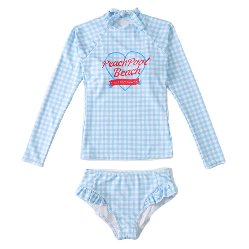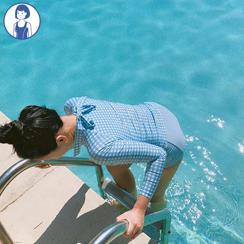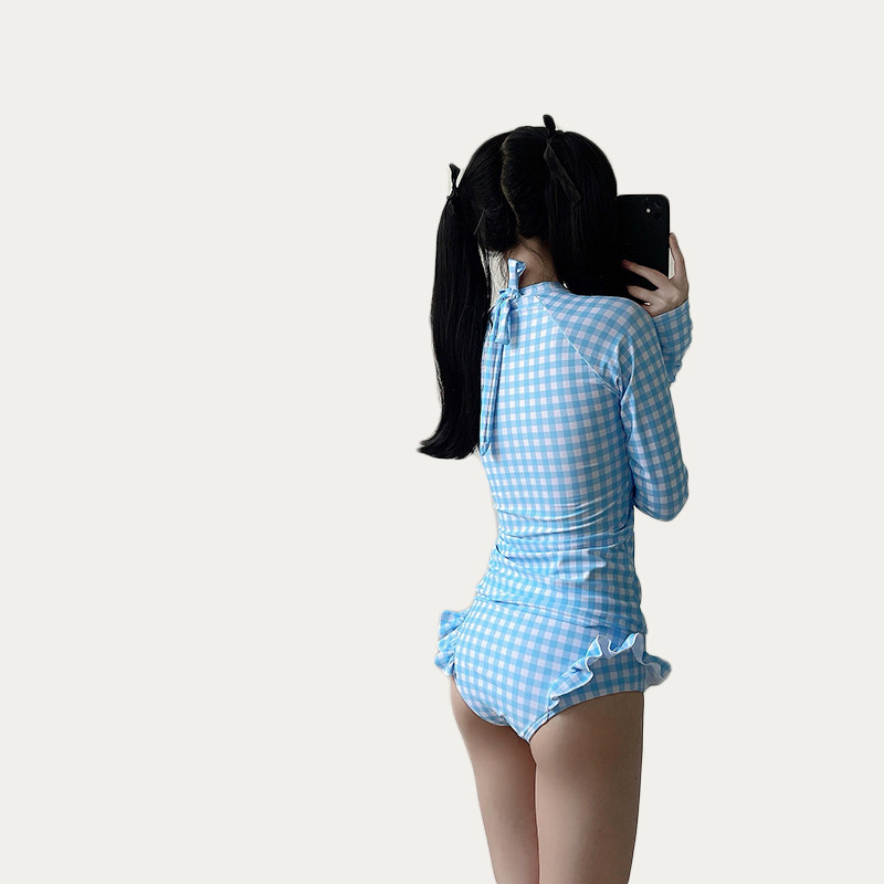Japanese cute girl sweet and pure desire conservative student small breasts gathered to cover belly long sleeves sunscreen two-piece swimsuit female summer