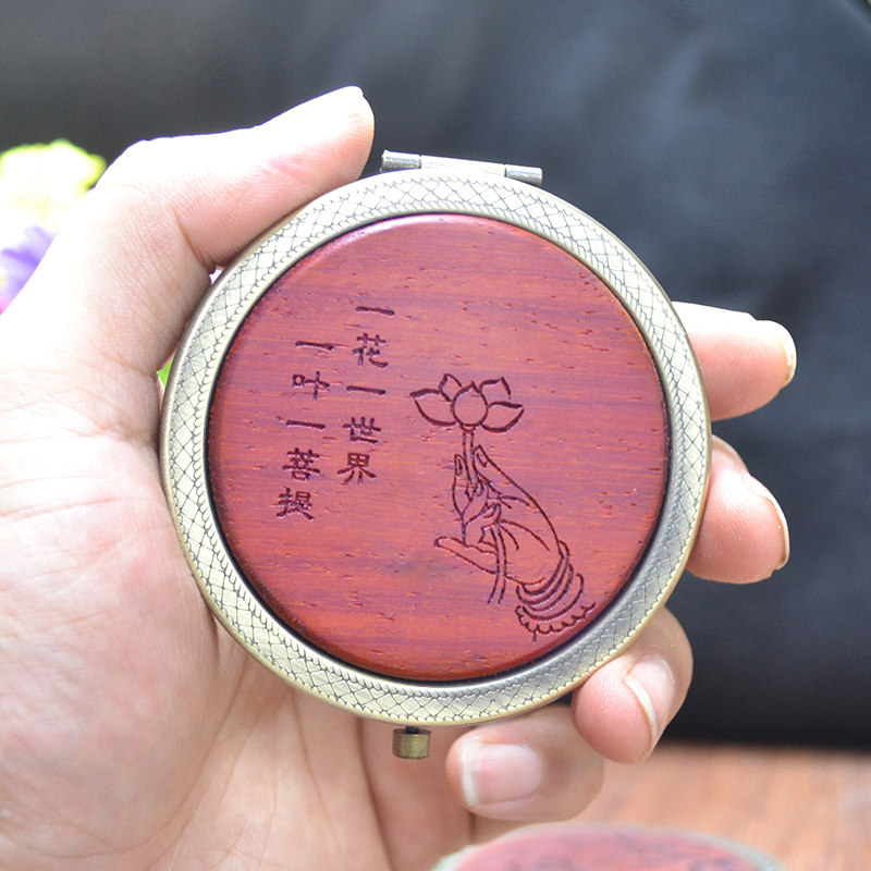 Hand-held portable folding mirror double-sided small magnifying cosmetic mirror retro flip-up glass student lettering customization