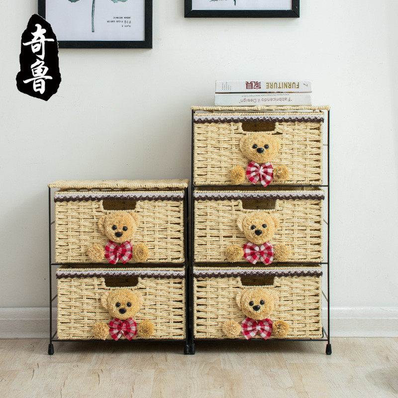 Bear bedside table environmental protection cabinet hand-woven storage basket rattan basket locker dormitory bedroom bedside cabinet new product