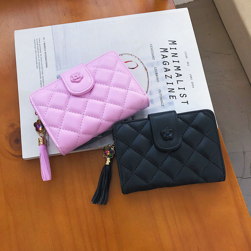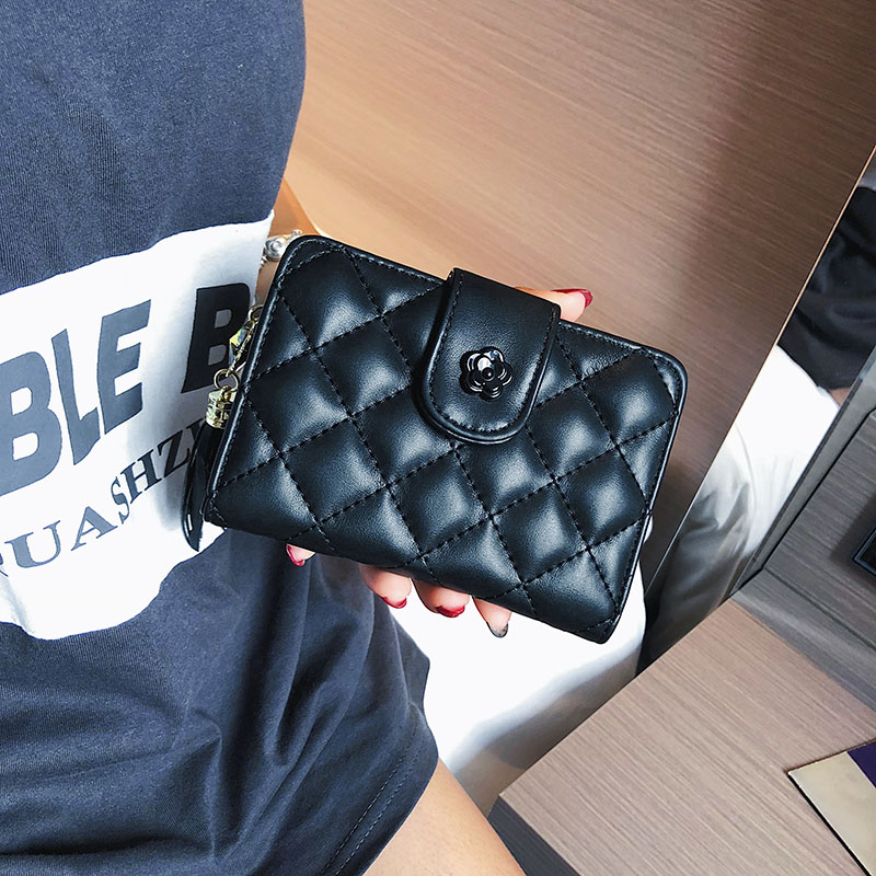 2021 new European and American small fragrant wind Lingwinger purse female short Qing New Flow Su Laing Folding Student Women Money Clip