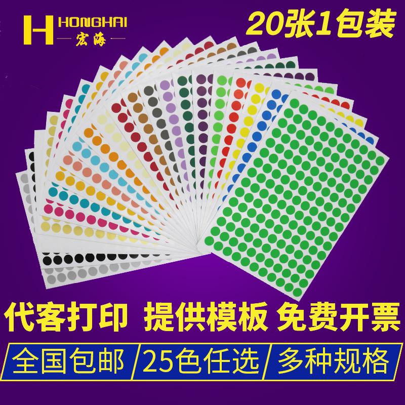 Honghai color round tag dot adhesive waterproof color stickers digital month color label cosmetics distinguish paperwork label 20 sheets