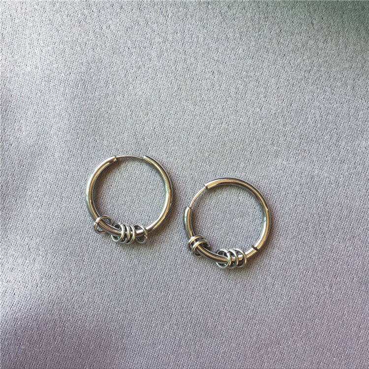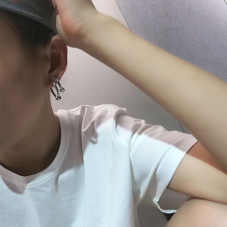 Neutral and cold style classic titanium steel earring Korean personality hipster all-match earrings hoop ear buckle student earrings