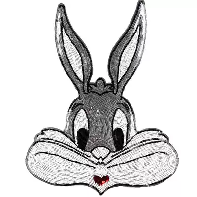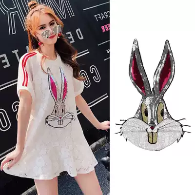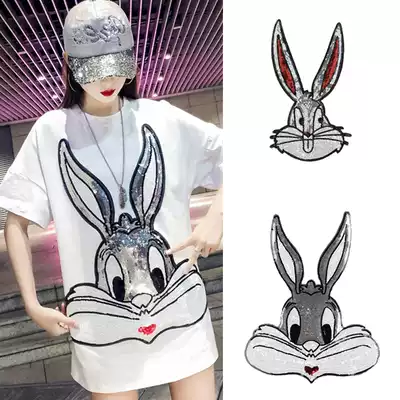 Fashion cartoon oversized Bugs Bunny sequins cloth stickers clothes holes stickers Sweater sweater decorative beads embroidered rabbit head