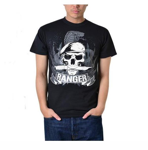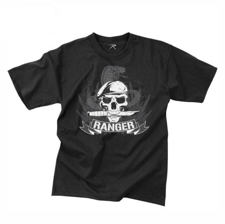 Vintage Roosevelt ROTHCO "US Special Forces Rangers" Skull Print Army Fan Short Sleeve T-Shirt