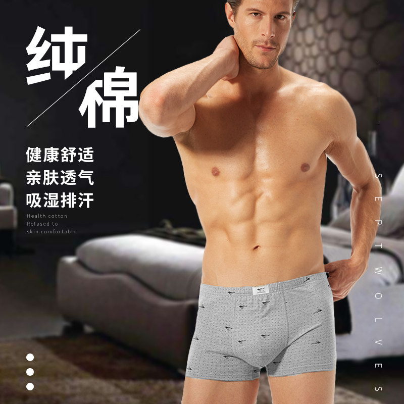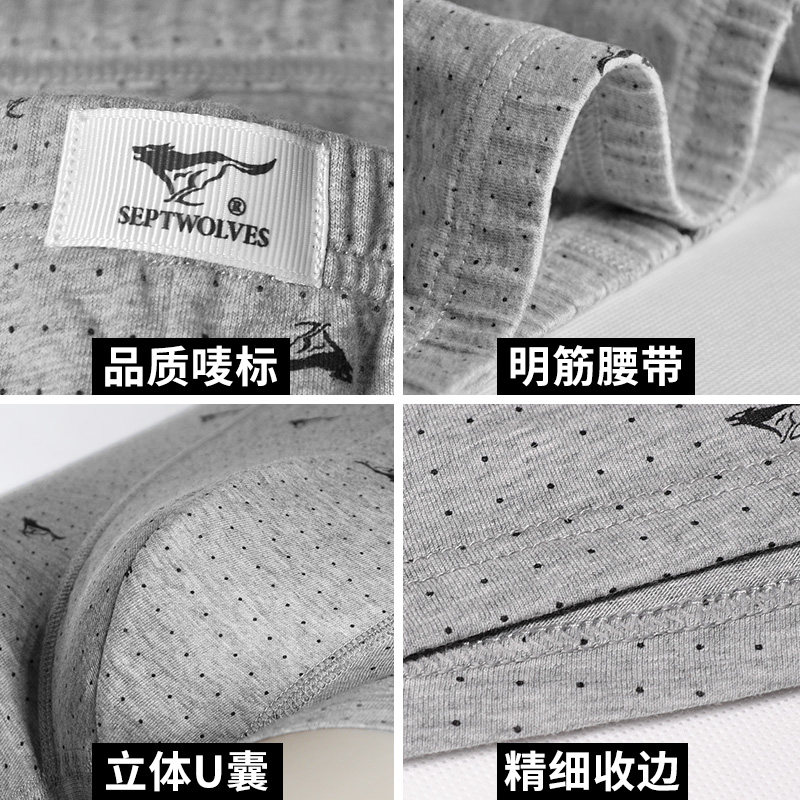Seven wolf men's underwear male horn daddy loose cotton and large code middle-waist quartet shorts for senior adults