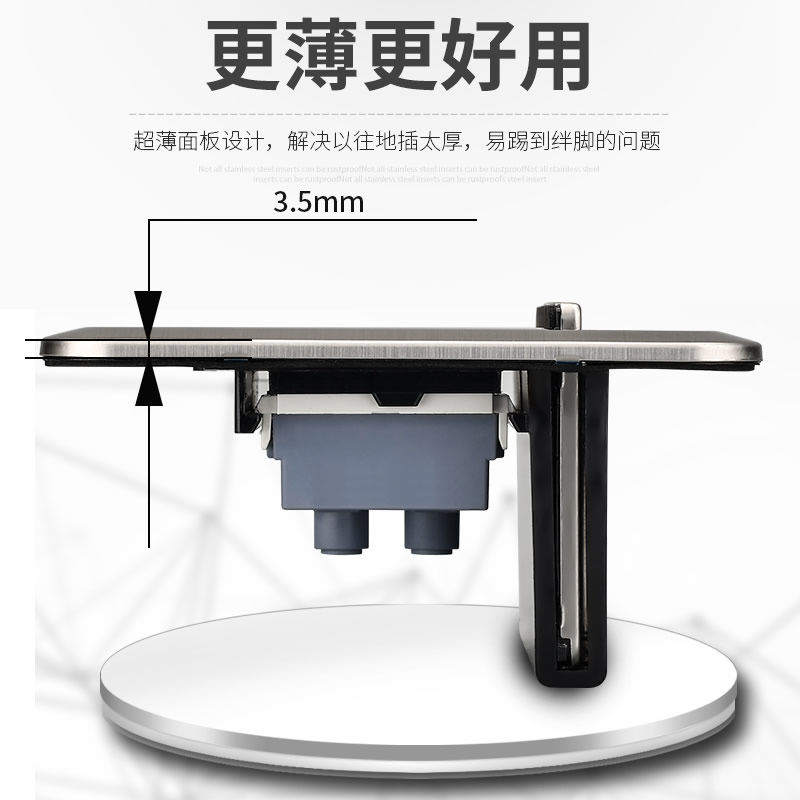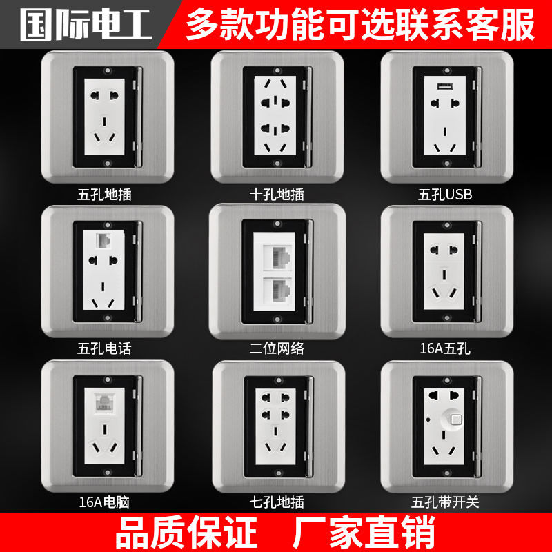 International electrician household hidden ground socket waterproof floor ultra-thin stainless steel five-hole ground socket panel