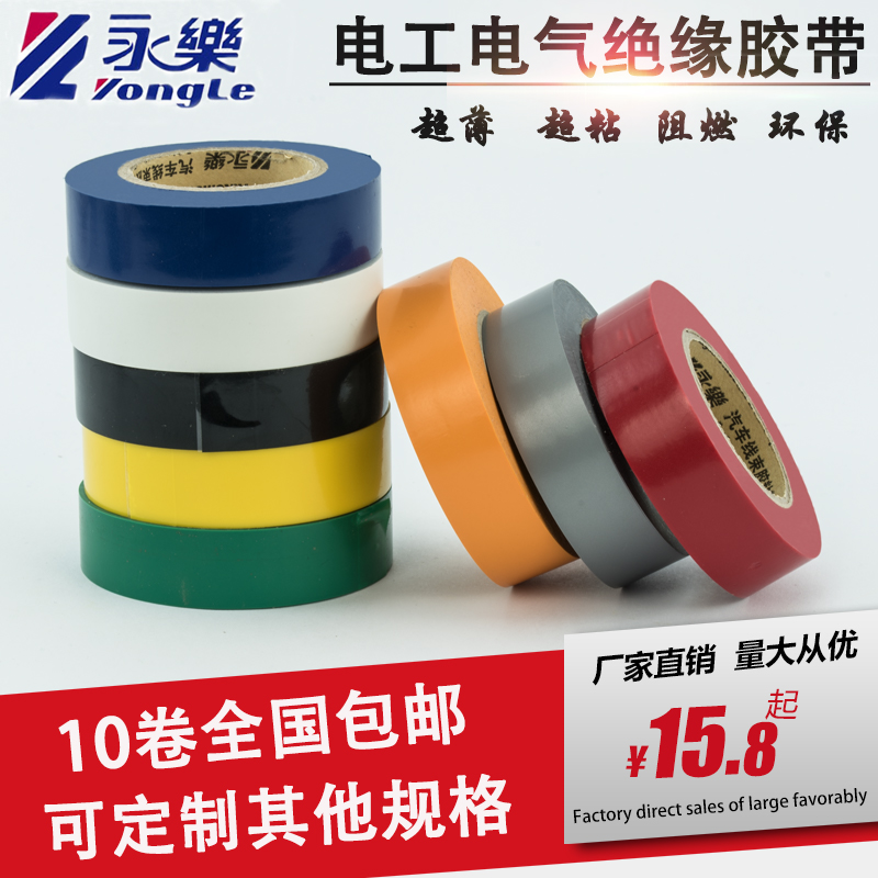 Yongle electrical tape insulation tape PVC electrical flame retardant ultra-thin waterproof environmental protection super sticky black high temperature resistance large roll m