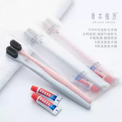 Hotel disposable toiletries wide head bamboo charcoal toothbrush toothpaste set hotel B & B special set of custom