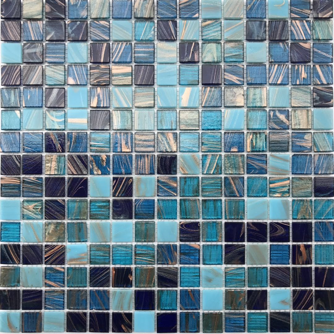 Gold wire glass mosaic Spot gold wire mosaic Black and white gray blue clouds symphony glass pool mosaic