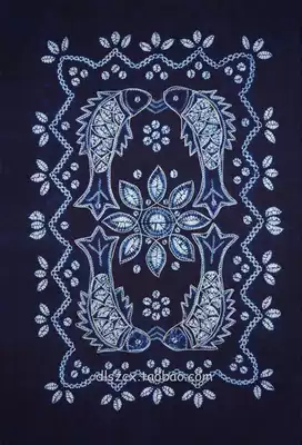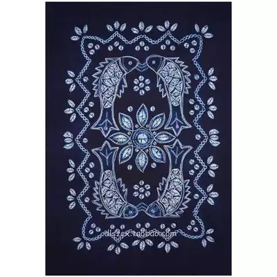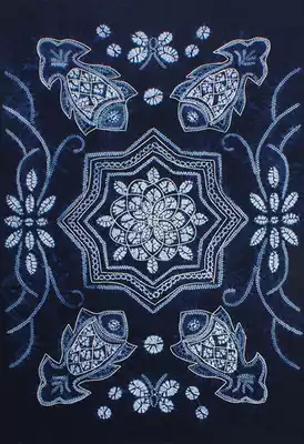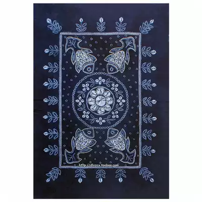 Yunnan Dali Bai handmade tie-dyed cotton square tablecloth table cloth tea table cloth dark blue auspicious fish