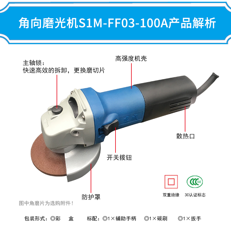 Dongcheng angle grinder S1M-FF03-100A portable grinding wheel cutting machine angle grinder polishing Dongcheng