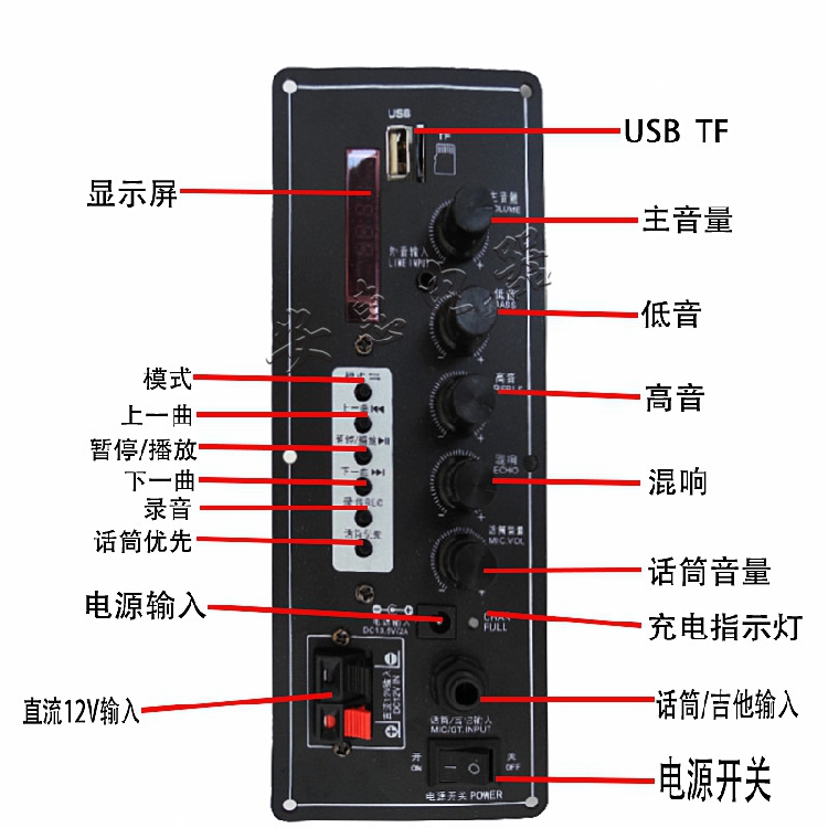 High-power digital Bluetooth amplifier board square dance tie rod battery mobile audio motherboard can be connected to 12V lithium battery