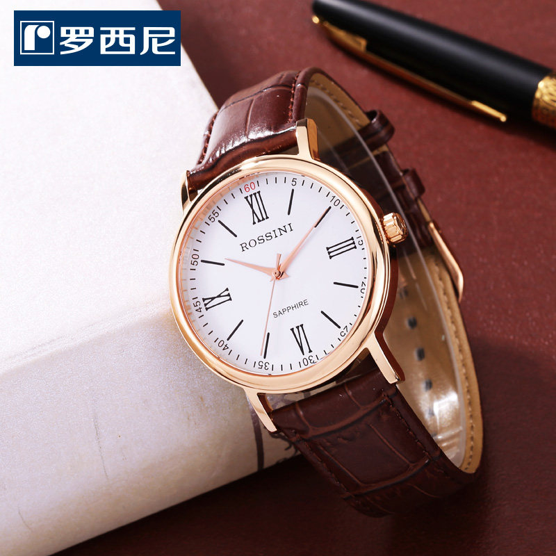Rossini watch Roman numeral rose gold quartz men's watch waterproof ladies watch leather strap couple watch 6646