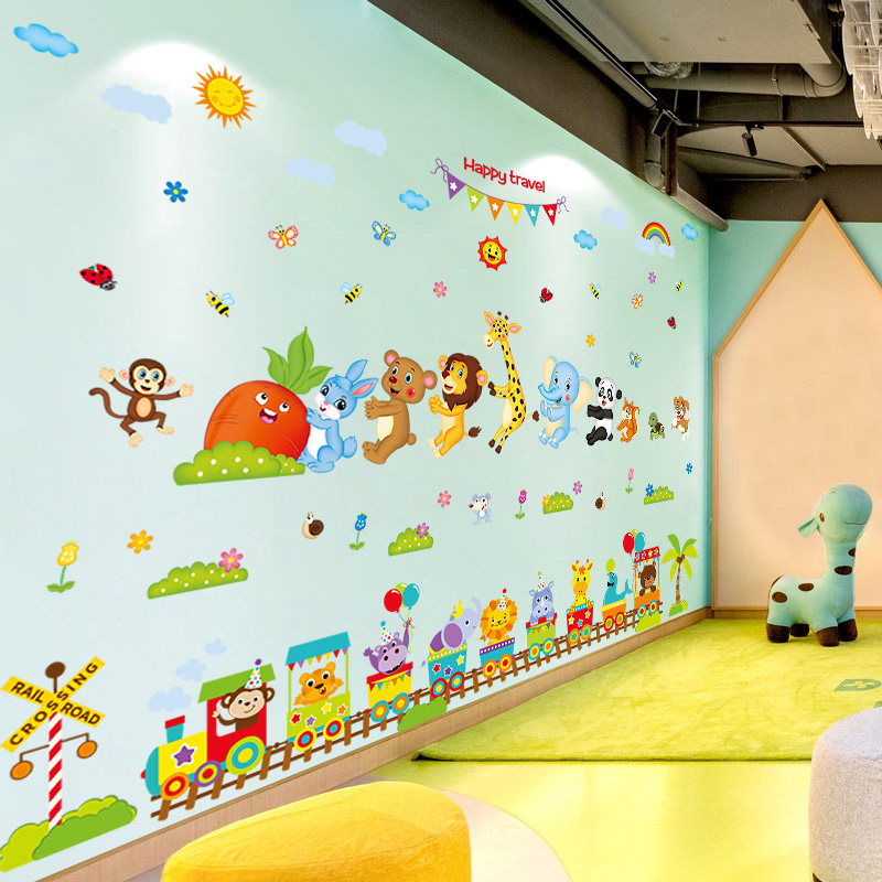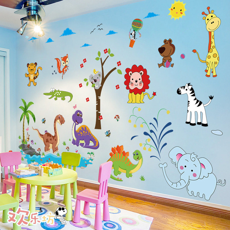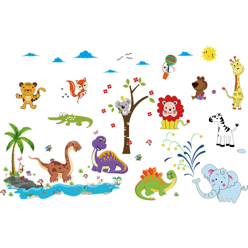Cartoon animal big tree wall sticker baby bedroom children's room kindergarten wall decoration wallpaper self-adhesive