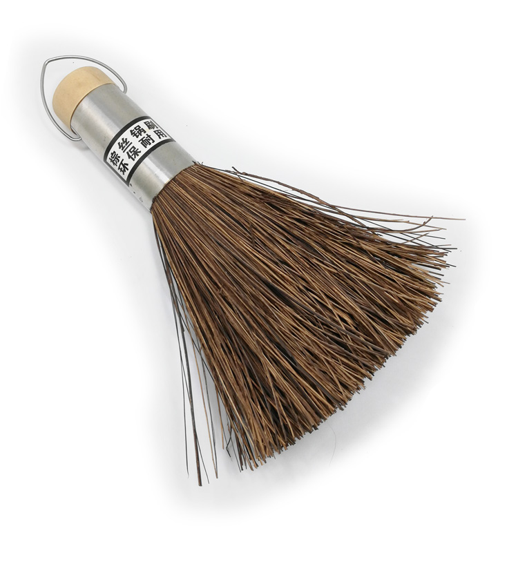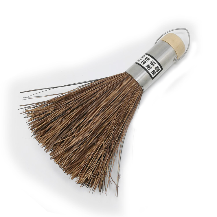 Large size long handle natural coconut palm silk wok brush pan with brush clear washing kitchen flat bottom pan with brushed non-stick oil without hurting the pan