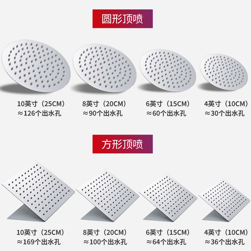 6-inch round 201 shower head 6-inch round 304 shower head 6-inch square 201 shower head 6-inch 6 304 shower head 8-inch round 201 shower head 8-inch round 304