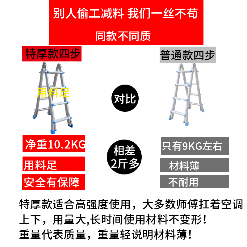 Thickness is not casually asked to see the product Tthick is weighing more than the same amount of weight 2 catties left and right Small giant Tthick three-step straight ladder 2 9 m People small giant Four steps Tthick and small giant Five steps to thicken the small giant